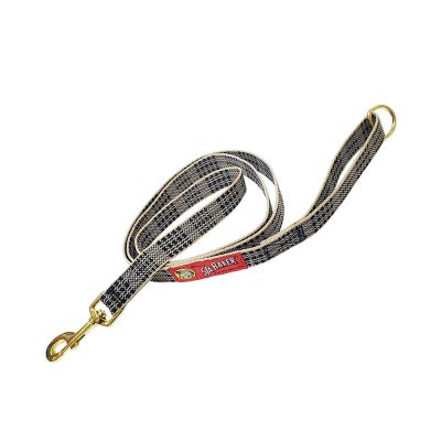 5/A Baker® Dog Leash is made from first quality 1" wide by 6 foot long polypropylene webbing woven in original Baker Plaid with the signature red tag. Features a brass plated bolt snap, hand loop and a dee ring added to the hand loop area for attaching poop bag holders.