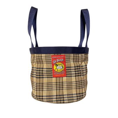 5/A Baker® Grooming Tote is made with Original Baker Plaid with nylon lining. Features 4 inner pockets and navy nylon carrying handles and snap. Measures 9" diameter.