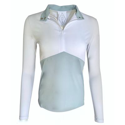 Wicking performance fabric with Air Flow Mesh back panel.Hidden zipper placket with hidden silver snap closure collar. UPF 50+ sun protection.