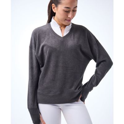 The slouchy sleeve cuffs offer thumb holes for an added cozy detail. Made from a luxurious blend of wool and viscose, this crew is unbelievably soft. The step hem, with a side slit and a longer length in the back, provides a flattering fit.