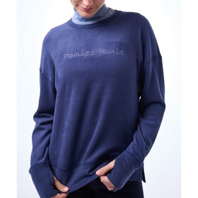The "Ponies Rule" Micro Crystal Iconic Luxe Crew features a soft and velvety fleece to keep you warm and cozy this season. Its Micro-crystal embellishments add a subtle shine to the sleeves, while the center back showcases a tiny logo.