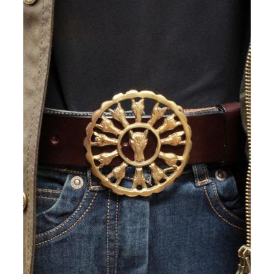 These beautiful buckles by Chris Brighoff are made from antique harness brass and have been converted and polished into custom belt buckles. They are designed to fit up to 1-5/8" wide belts.