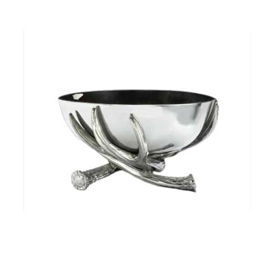 The three-tiered base features antlers crossing on top of each other to support the gleaming bowl. Handcrafted in sand-cast aluminum, this piece's unique design and realistic detail won't go unnoticed.
