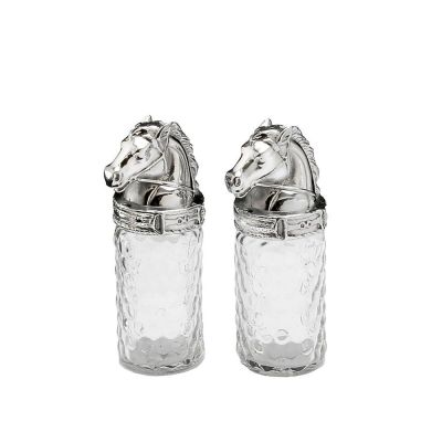 Apply a regal accent to your table with the help of Arthur Court's Horse Salt and Pepper Set. Beautifully crafted stallions rest above the dispensers as defined bridles and manes add realistic detail. The handmade, aluminum statuettes shine brilliantly against the bumpy texture of the glass.