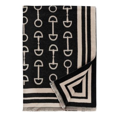 The AWST Int'l Acrylic Cashmere Snaffle Bit Scarf/Shawl is designed to be reversible with a Snaffle Bit print. Made from Acrylic cashmere to be extra soft!