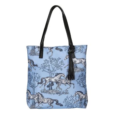 The AWST Intl Snaffle Bit Tote Bag with Tassel Has a large main compartment that is fully lined. There are accessory and zip pockets inside the tote to hold smaller belongings. This bag has a removable faux leather tassel and accents. It is perfect for everyday use.