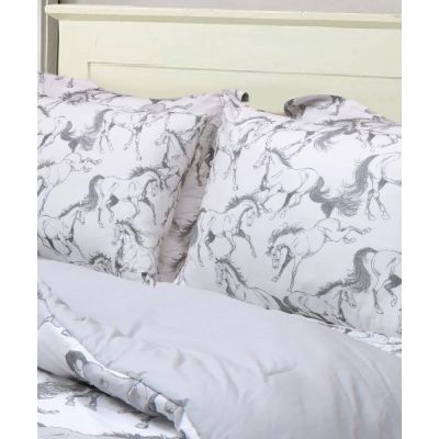 Sheet sets crafted from 100% premium percale cotton for the ultimate level of comfort and luxury. The set includes a generously sized flat sheet, fitted sheet with deep drop and pillow cases. Perfectly coordinates with our comforter sets for a stylish, cohesive look. Exclusive fabric design by renowned equestrian artist Lila Blakeslee. Luxurious, breathable cotton that is easy care machine washable. OEKO-TEX Standard 100 tested. *Comforter and Shams sold seperately* • Twin Sheet Set - 1 flat sheet • 1 fitted sheet with 14” drop • 1 20” x 26” pillow case • Queen Sheet Set - 1 flat sheet • 1 fitted sheet with 16” drop • 2 20” x 26” pillow cases