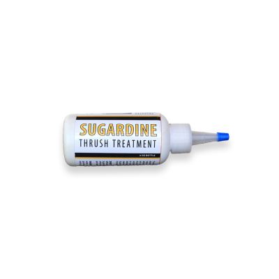Thrush is a common issue that all horse owners will experience at least once in the lifetime of owning a horse. A nasty, aggressive combination of fungus and bacteria that attacks the soft underside of the hoof, primarily the frog and surrounding heels, bulbs, and crevices. Sugardine Thrush Treatment now offers an easy way to apply a proven solution to your horse’s thrush. This liquid formula is easy to apply, non-caustic, and will not burn or otherwise damage your horse’s already sensitive hoof. In addition to resolving the thrush issue, you can expect the application of Sugardine Thrush Treatment to toughen your horse’s hooves, soles, and heels for overall improved hoof health.