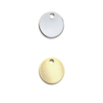 Round hanging tag in brass or chrome, perfect for bridles and small dog collars, etc.