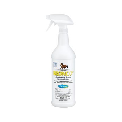 Bronco E Fly Spray is a staple for every stable. Kills six fly species, gnats, ticks, deer ticks, fleas, chiggers and lice! Insecticide and repellent for use on horses, ponies, foals and in horse barns and stables.