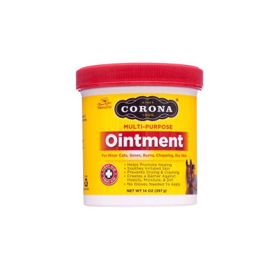 For over 100 years, Corona Ointment has been protecting skin and helping to promote the natural healing of minor cuts, sores, burns, chapping, and dry skin. Corona Ointment has been a staple in horse wound care kits for years and works so well that no barn should ever be without it!