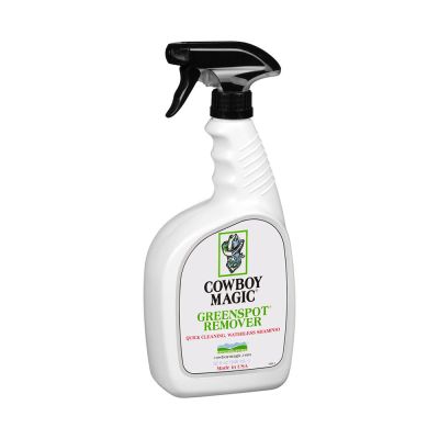 Cowboy Magic's Greenspot Remover is a "shower in a bottle". It's easy to use and formulated to remove manure, urine, and wet or dry sweat spots instantly. It gives those newly cleaned spots a high-shine after brushing.
