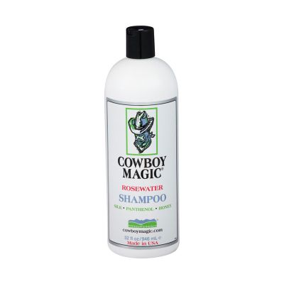 Cowboy Magic Concentrated Rosewater Shampoo with Silk Conditioners is easy to use and formulated to gently dissolve dirt, clean hair, and condition the hair and skin. It is easy to rinse. Can be used at full strength or diluted up to 20 to 1.