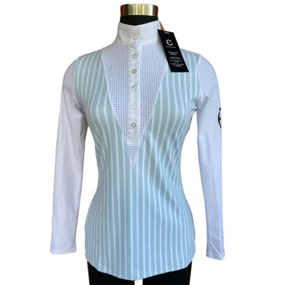 Stunning and elegant is how we describe Equestrian Club's show shirt AMY. Made of silky perforated material which feels great under the show jacket. Delicate stripes in aqua blue add sophisticated and unique look. EQfashionable must!
