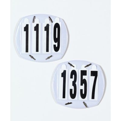 Number sets come with number cards 0-9 for each digit slot. Elastic straps make attaching to bridles or breastplates a breeze. Measures 4 x 4 1/2" Sold individually.