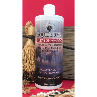 Equiderma Neem Shampoo is an organic neem leaf and neem oil based formula which also contains arnica, pine bark , basil, chamomile, and cherry bark for optimal cleansing with a long lasting nourishing effect on the skin. Our soap free formula is made with the cleanest and greenest cutting edge products on the market today. It is designed to improve the condition of the skin without stripping natural oils that are essential for a shiny, glossy, healthy coat. Gives a silky sheen to all colors and adds body and fullness to manes and tails. You will see a remarkable difference form the very first use!