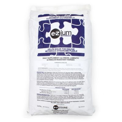 EZium Metabolic is a daily magnesium supplement with added chromium. Elevated levels of insulin and glucose are typically associated with Equine Metabolic Syndrome (typified by obesity, insulin resistance, laminitis). When under stress, horses release the stress hormone cortisol. The form of chromium in EZium Metabolic has been proven to reduce not only insulin and glucose but also cortisol levels in the blood. Feeding EZium Metabolic daily reduces the negative health impacts associated with magnesium and chromium deficiency in obese, laminitic, insulin-resistant, and horses under extreme stress.