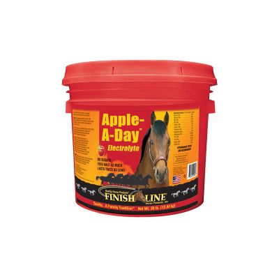 Finish Line Electrolytes help promote healthy hydration in your horse by replacing electrolytes lost during daily activity. This electrolyte/mineral replacement replenishes electrolytes and aids in appetite and water consumption. Apple-A-Day is a cost effective product that contains no fillers, no sugars and no artificial colors!