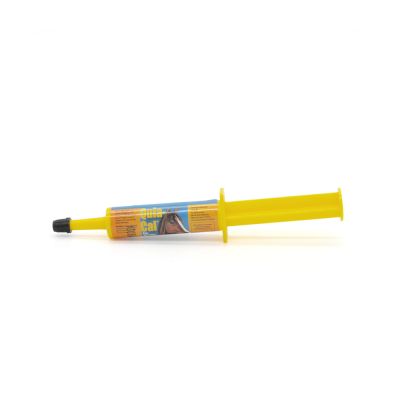 Quia-Cal is a fast acting one-shot oral paste that promotes healthy nerves in your horse. Supplied in a convenient oral syringe, Quia-Cal has a tasty apple cinnamon flavor that horses love. Use as an aid in the prevention of minor nervousness during times of stress. Contains Vitamin B1, Calcium and Magnesium.