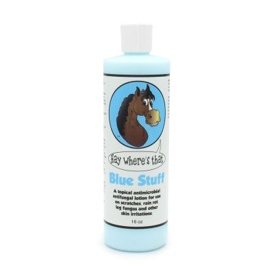 “Hay, Where’s That Blue Stuff” works quickly on rain rot, scratches, sweet Itch and many other fungal or bacterial skin infections. Gets rid of that pesky fungus on the horses legs. Clears up hopple burns, chafing, saddle sores, coronary band fungus and can be used on the horse’s face for skin problems. This broad spectrum anitfungal, antibacterial lotion gets the job done! It is an affordable, effective, non-sticky topical lotion. A little bit goes a long way! It is a must have for your barn. Give your horses the best! This product contains natural antiseptics and carrier oils. This topical heals from the inside out with faster results. No picking or roughing up. Less waste. You don't have to rinse or wash off. That Blue Stuff lotion is already under the skin working to eliminate the infection.