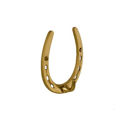 This Brass Horseshoe Hook is sturdy and sized to hold tack and more. Available in a variety of finishes and with a wood backing. Measures 4.5 inches high, 4.0 inches wide, extends 1.50 inches from the wall. Mounting screws included.