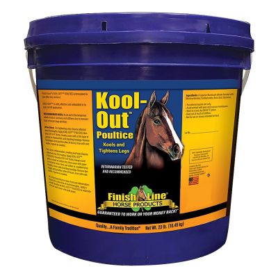 Kool-Out™ Poultice is an aid in the temporary relief of minor stiffness and soreness due to overexertion. Equine skin is 8–10 times more sensitive than human skin; Kool-Out™ was formulated especially for sensitive horses. Kool-Out™ non-medicated poultice is creamy and smooth, it goes on easy and washes off easy. Finish Line®s Kool-Out™ Poultice is mild enough for everyday use and for horses with sensitive skin, can be used over minor nicks and cuts. It cools and tightens your horses legs after work outs, performances, events, and races. Also used as a hoof packing.
