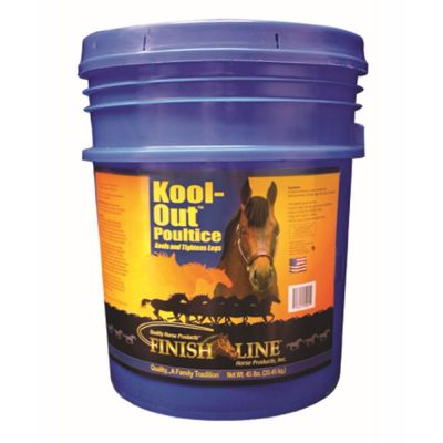 Kool-Out™ Poultice is an aid in the temporary relief of minor stiffness and soreness due to overexertion. Equine skin is 8–10 times more sensitive than human skin; Kool-Out™ was formulated especially for sensitive horses. Kool-Out™ non-medicated poultice is creamy and smooth, it goes on easy and washes off easy. Finish Line's Kool-Out Poultice is mild enough for everyday use and for horses with sensitive skin, can be used over minor nicks and cuts. It cools and tightens your horses legs after work outs, performances, events, and races. Also used as a hoof packing.