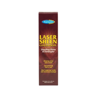 Whether you're in the showring or trail riding with friends, you want your horse to look and feel his best. Laser Sheen Dazzling Shine & Detangler makes grooming a breeze, providing him with a radiant shine and flowing mane and tail.