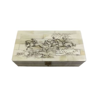 This unique bone box engraved with a fox hunt scene will make the perfect gift or keepsake for the equestrian or horse lover! Leave it out on your desk or nightstand- it is just the right small size for keys, jewelry, and paperclips.