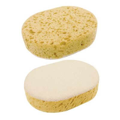 Features an abrasive pad on one side for aggressive cleaning and a sponge material on the other side. Measures 3-3/4" wide x 6" long x 1-3/4" thick.
