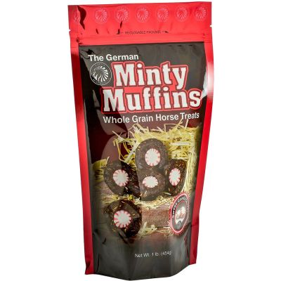 It's the German Horse Muffin with a sweet minty center! Each muffin is a decadent blend of sweet feed and molasses plus corn, oats, bran, wheat flour, cornstarch, soybean meal, dehydrated alfalfa meal, vitamins and more.