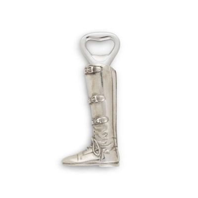 Vagabond House artisans captured the worn supple leather of a tall riding boot, laced, buckled and ready to ride again in the detailed pewter figural handle of the Riding Boot Bottle Opener. A sturdy stainless steel opener head is ready to work opening most any bottle that needs an opener. A great gift for any horse lover, a must-have for a well-appointed Equestrian theme bar, this detailed opener is beautiful and comfortable to use.
