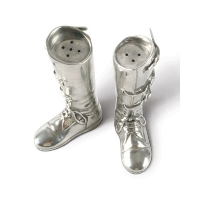Our Riding Boot Salt and Pepper set is created with richly detailed Vagabond House pewter. Accurate to the very laces on the boots, these are a perfect table accent after a riding party, for a Kentucky Derby celebration or just to express your love of the equestrian life. For larger occasions, mix them with the Riding Cap and Mare and Colt sets from our Equestrian Life Collection. Our wonderfully detailed and realistic Vagabond House Pewter Salt and Pepper sets make perfect gifts for nuptials, housewarming, collectors or just because.