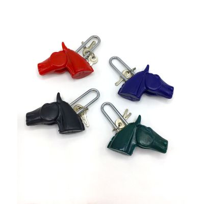 Perfect for tack trunks, lockers, or your trailers, the Phoenix West Horsehead Padlock comes in four attractive colors and includes three keys.