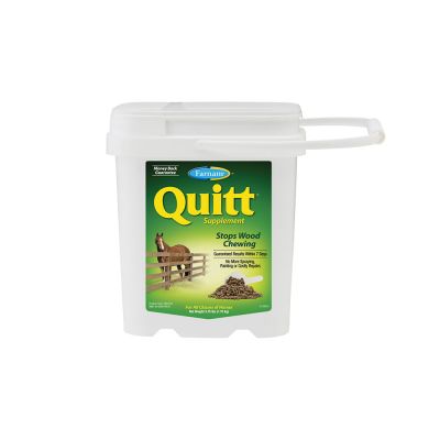 Studies have shown that many horses chew wood because of a nutritional deficiency. Stop wood chewing without resorting to painting, messy sprays and costly repairs. Quitt pellets are the first supplement guaranteed to stop your horse from chewing wood. Just add to his daily ration.