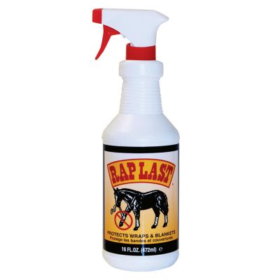 Rap Last is a unique product which uses natural ingredients to prevent horses from chewing on wraps, blankets, wool, manes, tails, and more. With proper use, your animal will leave anything alone. There is only one way to describe it: Effective! This is because Rap Last works in three ways, by sight, smell, and taste. A small amount goes a long way in keeping your valuables safe.