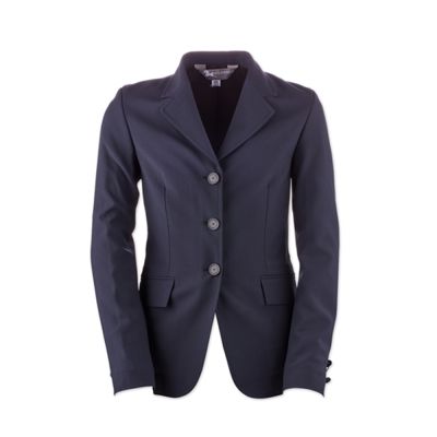 The RJ Classics Girls Ellie Softshell Show Coat is perfectly designed for comfort and function! The Grey label combines traditional styling with modern fabric technology into a body contouring fit. With a hidden interior zipper eliminating gaps for a contoured fit, the Ellie’s half-lined mesh interior with grey interior seam piping is comfortable and less restrictive for Junior riders on the move. Ideal for summer showing, features such as a UPF 50+ protection from UV rays, moisture wicking and antibacterial capabilities, this jacket will keep you cool and comfortable when in the ring. The 94% Polyester/ 6% spandex material is not only comfortable and stretchy, its low maintenance with stain releasing property and you're able to machine wash it too (Warm, gentle cycle, separately inside out with buttons closed- lay flat to dry, Low iron with a cloth barrier or Dry clean).