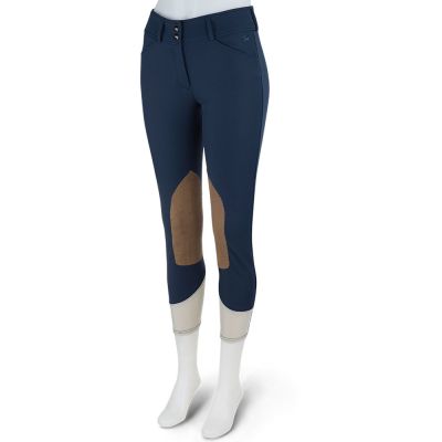 The mid rise front zip Anna model euro seat breech is the pinnacle of fit and comfort, featuring a premium quick dry and stretch fabric which provides amazing hand-feel, sculpt and coverage. The fabric covered interior waistband and mesh lower leg panels provide ideal comfort. Premium Clarino knee patches are naturally supple and breathable while presenting the elegant look of real suede, yet it can withstand intense abrasion. R.J. details on the front closures and pocket complete the design.