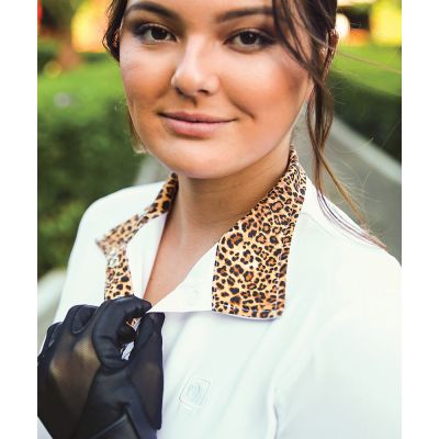 The Lindsay Long Sleeve Show Shirt features Chill-factor fabric with Powerfresh treatment. Mesh under the sleeves keep you cool and comfortable, while the woven snap-wrap collar and placket give a classic equestrian look. Fun prints hidden inside collar and placket keep it unique. Quiet white top-stitching and logos make this the perfect Hunter Shirt. Machine washable.