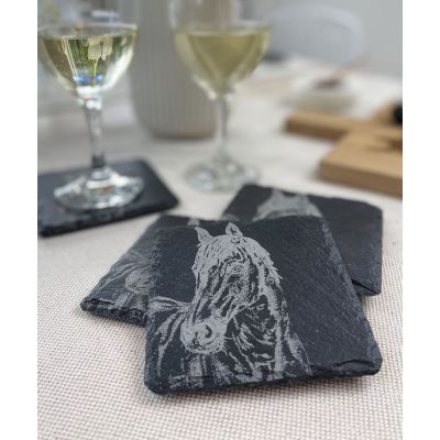 These beautiful, hand-crafted slate coasters have been engraved with several stunning hand-illustrated designs. These unique slate coasters adds a classic highland touch to your home that will be sure to impress and will make a lovely table piece for your guests to set their drinks on.