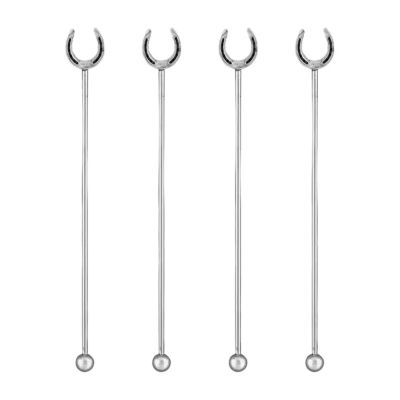 Cocktail swizzle sticks are great for stirring beverages, juices, coffee and more. Add a little flavor to your drink beyond mere stirrer functionality. They are reusable and elegant., Size: 7 1/4" L, Material: Handcrafted Zinc Alloy, 18/8 Stainless Steel Stick, Care & Clean: Hand Wash Only, Includes: 4-PC, The stirs sticks are Made of 18/8 stainless steel material, Great for stirring your drink, cocktails, coffee, or beverages, easy to clean.