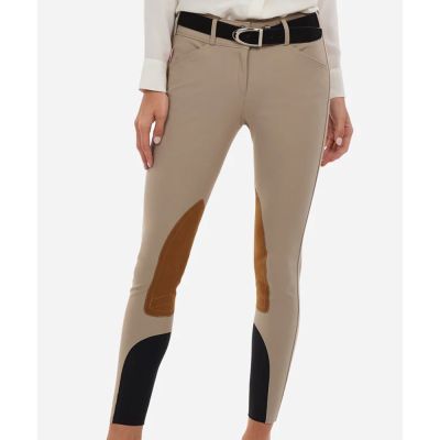 They are made from lightweight fabric blend with four-way stretch. Low rise style, front zipper, Clarino knee patches, front pockets, belt loops and light breathable boot sock fabric.