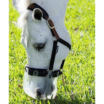 Try our top-of-the-line muzzle. Our research determined horses dislike muzzles because they cannot behave naturally in them. With the historical cage-like or bucket-like versions, horses are unable to engage in social activities like wither scratching or other playful interactions resulting in social and emotional health in horse herds.