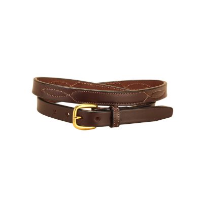 Crafted with the finest bridle leather, this 3/4" belt has a stitched pattern repeated three times, making it perfect for name plates or as an attractive design. Features a sewn in brass buckle.