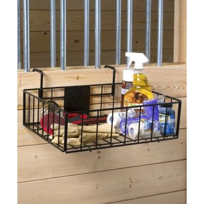 A great storage solution to keep frequently used items within arm’s reach! This durable metal basket hangs over most stall walls and fence rails with two swivel hooks. It can also be permanently mounted using the pre-drilled holes. Entire basket folds flat for easy transport and storage. Great for taking with you while traveling!