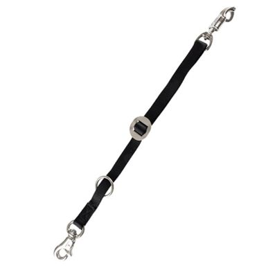 A better concept for securing horses. Made of 1" heavyweight nylon with malleable iron bull snap and panic snap which clips directly on to the halter and existing tie rings. Holds a horse under normal circumstances, yet pulls apart if horse panics. Features a loose ring for easy hook up in stock trailers. Adjusts to 35" long.