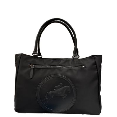Carry your equestrian style to your work spaces and beyond in the NEW Tucker Tweed Office Tote. This nylon/leather upscale tote is a pocket powerhouse! Interior pockets for laptop, drink, phone, cords and more. Exterior completed with gunmetal hardware, matching zipper pockets both front/back and trolley sleeve. Includes adjustable shoulder strap.