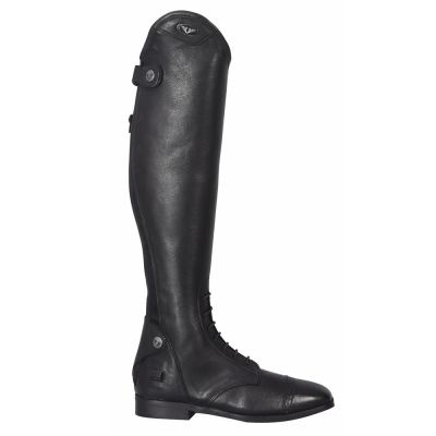 TuffRider Ladies Regal Field Boots are classic equestrian field boots crafted with ultra-soft leather and durable grippy leather on the inside of the boot. These field boots are gorgeous with Spanish tops, square punched toe cap, and contoured ankles. Wearing them for hours on end won't be a problem as these tall boots are made with flex construction and elastic gussets. The back zipper with snaps secures the boots comfortably.