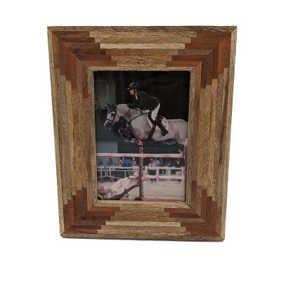 The artisans that created this frame is a master of mosaic. Each wood piece is finished and cut into small tiles and applied artfully to the wood base.