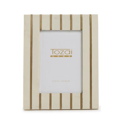 From the marble quarry to your home, this uniquely crafted photo frame features brass inlays for a modern look to showcase cherished memories. Made of natural stone, each piece is unique, adding a touch of luxury and sophistication to any home.